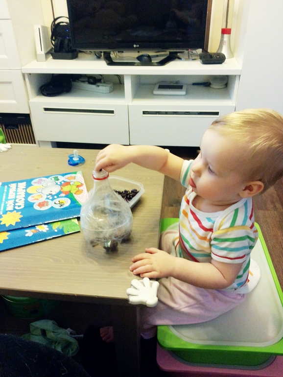 Сегодня доча порадовала, весь день усердно училась одевать кольца на пирамидку, и у нее получалось:)