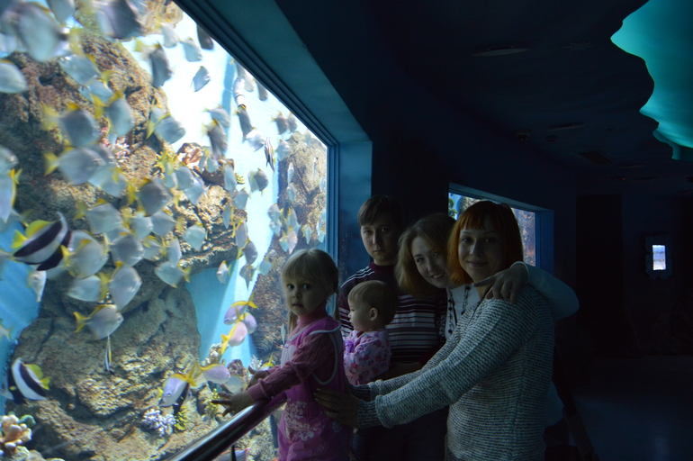 Наши с Юлей выходы в светМы были в пятницу, 3 октября. Детям очень понравилось. В океанариуме сейчас половина экспозиции, правда, закрыта на обновление.Но нам дали даже погладить пингвинчика)))Мы приехали к 10:00, к самому открытию океанариума, их как раз кормили...Дети были в восторге. Юля пингвинчика немножко боялась, это из-за того что он бескомпромиссно пошел к ней знакомиться))))Они очень смешно разговаривают, и Юлька испугалась...
