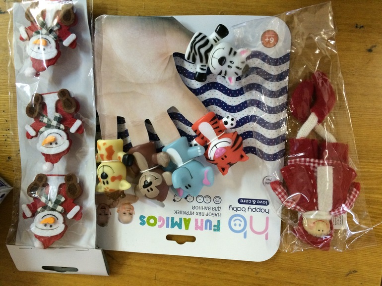 Я, как крайне любопытный человек, не донесла посылку до дома, распаковала прямо на почте)))Девчонки мои пока еще ничего не видели)))Думаю, что снеговичков на прищепках спрячу и, как человек, не любящий заморачиваться, использую на будущий год для адвент-календаря...Буду прикалывать ими задания от Деда Мороза))) а еще там прикольная красная куколка, думаю повесить ее на елку и пальчиковые игрушки-зверята)))Очень клевые, мне такие даже нигде не попадались)))Огромное спасибо!!!С наступающим Новым годом!!!)))