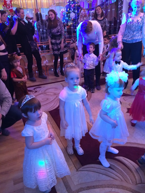 Девочки, я так перенервничала...хуже чем когда в первый раз вела ее в сад...Подозреваю, что она это почувствовала, и поэтому тоже вся была на взводе...Для меня это был первый утренник в качестве мамы. Я ужасно боялась, что все сорвется...заболеет, расплачется, испугается Деда Мороза...Про Деда Мороза и снеговика читала ей усиленно весь декабрь, рассказывала, какой добрый Дедушка Мороз, как он любит деток и дарит им подарки...мультики новогодние включала...Но сегодня ночью не могла обеих уложить спать до 1:30 ночи...Вроде и в кровати, но не спят, и все тут...Утром заманивала Юльку в сад конфетами..."Не пойдуууу...Уйдиии" - кричала мне моя принцесса...В итоге у меня руки тряслись, фотоаппарат в руках ходил ходуном...