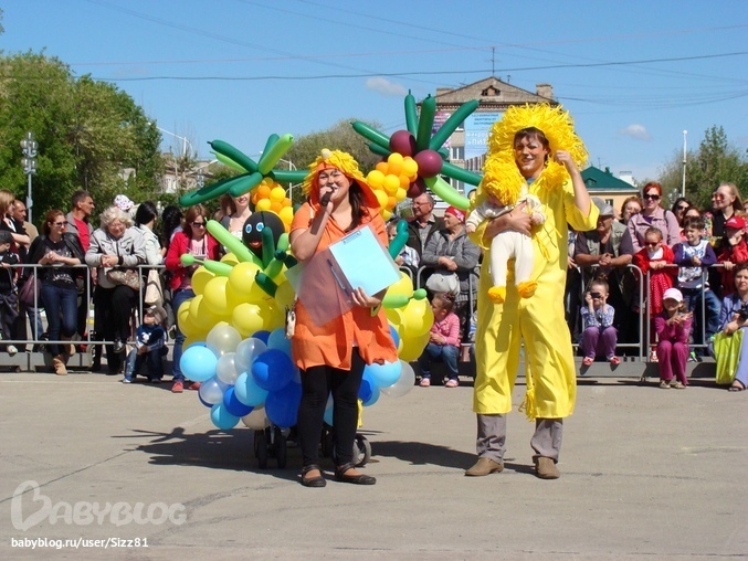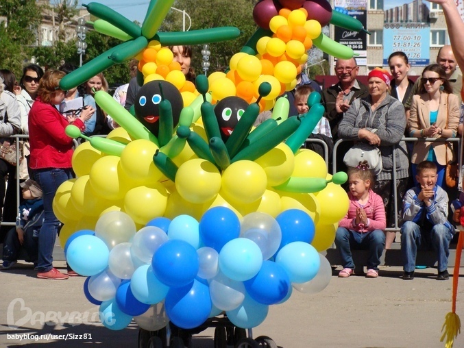 "Самая праздничная" была коляска украшеная шарами. Из шаров были сделаны пальмы, папуасики, а сама семья, была семья львов, т.к. их маленького сыночка зовут Лёва. Мне было не понятно, сами ли они украшали коляску, или заказали такую услугу, в своей презентации они об этом не рассказывали.