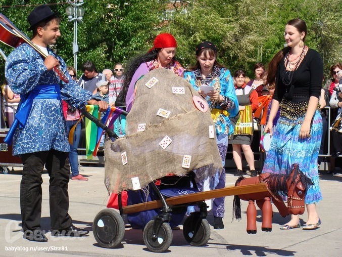 "Техно-коляска" стала коляска под названием "Лампа Алладина". Коляска была цельная, полостью сварена. Мне очень понравилась сама идея, продуманы костюмы родителей и малышика: