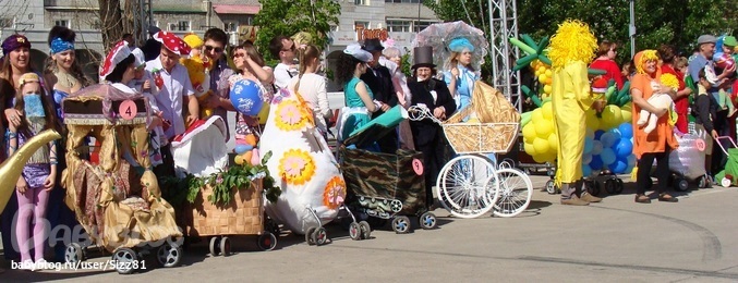 Ну и самый главный приз - "Гран-при" достался коляске прошлого века. Каляску они тоже делали сами, т.е. если другие участники делали украшения вокруг современных колясок, то эта коляска была полностью сделана как самостоятельная. И на презентации коляски был небольшой рассказ как появились коляски в мире. Костюмы тоже были замечательные. Я как увидела всю эту красоту, сразу подумала, что подам ее на "Гран-при", настолько целостно смотрелась коляска и сопровождение. И большиество членов жюри тоже выдвинули эту коляску на главный приз!