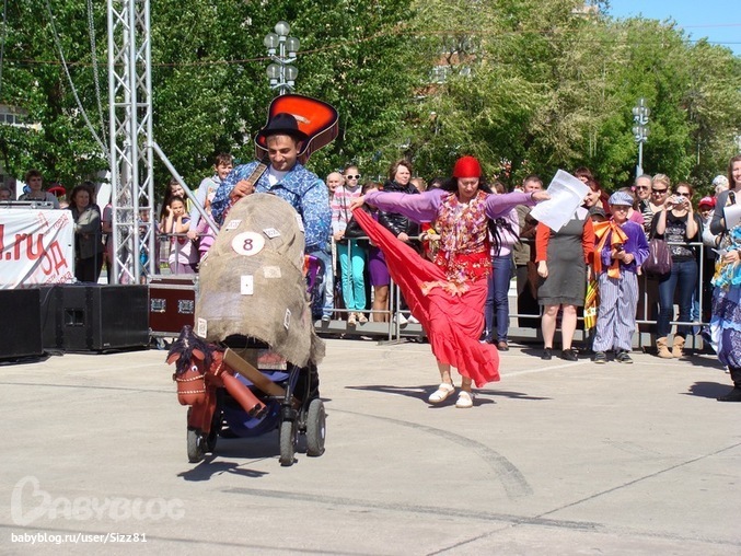 "Дружная семья" - коляска для маленького Султанчика, принимали участие не только родители, но и другие родственники. ЗдОрово представили свою коляску, старшая дочь даже исполнила какой-то цирковой номер с обручем.