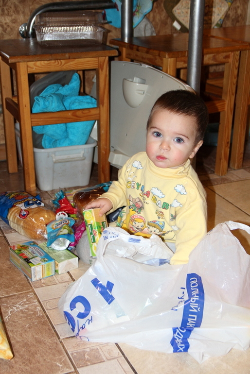 То, что благополучно пережило пользование моими племянниками и дочкой заканчивает свой век на Тиме. Половина Сашиных игрушек уже отправлена в помойку. Отламывается даже не отламываемое. Еще он все раскидывает. И делает это сознательно. Выкидывает игрухи сидя в автокресле, коляске, слинге, стульчике для кормления. Книжкам везет чуть больше, но их наедине с Тимом лучше не оставлять. Плотные атнивандальные страницы разжевываются. А потом он ходит и плюется картоном. У стареньких подклеенных книжек найдет за что зацепиться и отдирает. То же происходит с обоями. Тем не менее книжки он все же любит. Требует чтобы доставали, читали, рассматривает картинки. А потом бросает на пол и ходит по ним. Падает, ударяется, требует утешения, успокаивается и бежит дальше вредительствовать. Синяки, шишки, царапины - все присутствует в повседневном облике ребенка. Очень любит «помогать» маме.