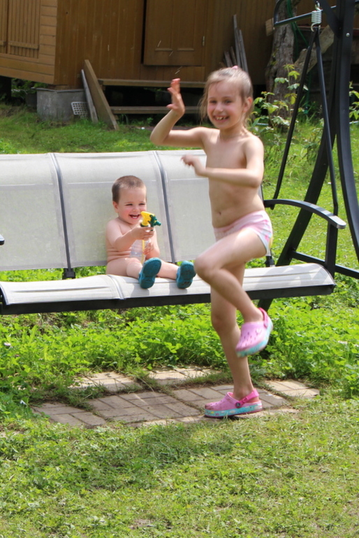 Как многим известно, все лето мы провели на даче. И в этом году отдых был прям по Комаровскому (ну, почти). Соседи поразъехались кто куда и нас троих окружали лишь тихие бабушки - соседки. В выходные, конечно, становилось более многолюдно и наш папа приезжал, но в общем... Минимум контактов с другими людьми и детьми в особенности, свежий воздух, скудное питание (как то не охота мне на троих разносолы готовить. суп, каша, овощи да котлетки - наш рацион). Детей отмывала в основном перед обедом и уже на ночь. Гуляли, копались в песке. Вот только бассейн я не стала доставать в этом году. Были. были теплые дни, когда реально можно было бы занырнуть. Но, поскольку я с детьми одна на даче, то и присматривать только мне. А на участке на улице они частенько без меня (пока обед готовлю, уборку делаю, еще что-то). За Сашу не переживаю, а вот Тимоха лезет везде. И бассейн ну никак бы не остался без его внимания. Так что безопасности ради купание на участке было ограничено брызгалками