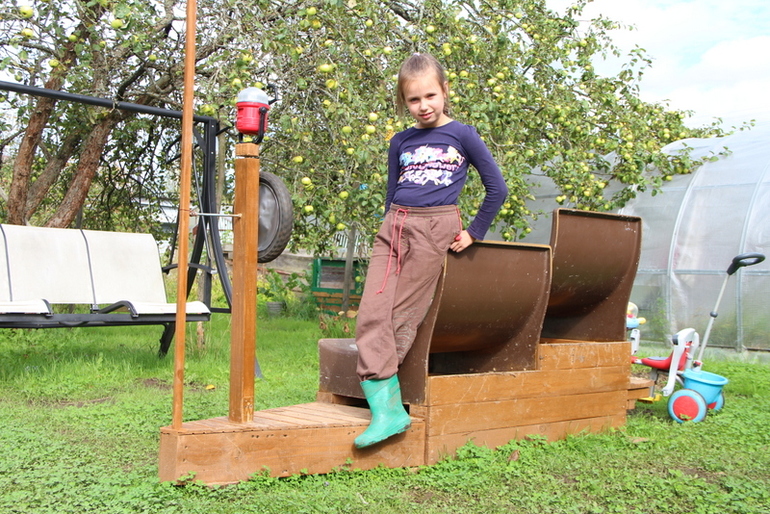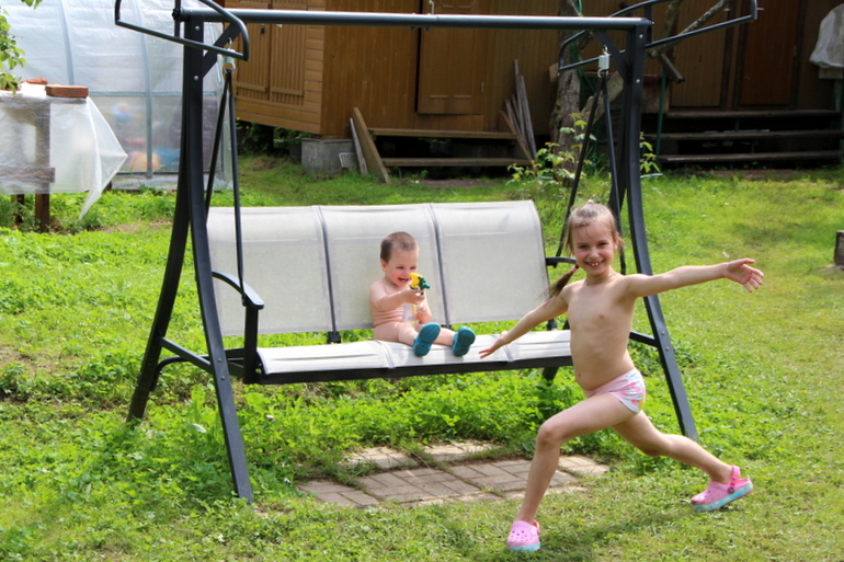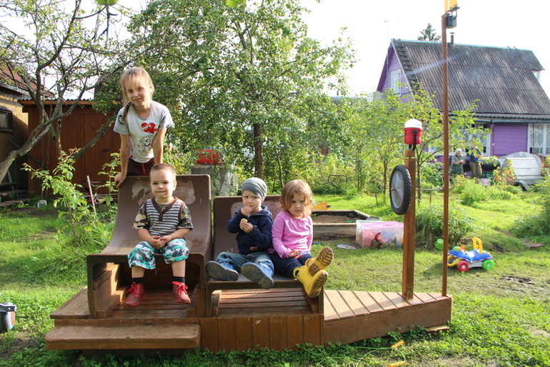 В августе появились соседские дети, которые тоже с удовольствием играли на этой чудо конструкции.