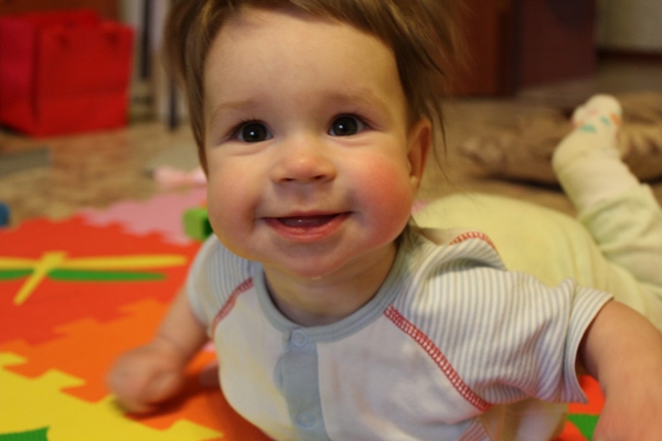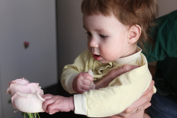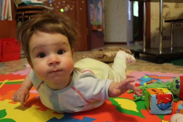 Скоро 6 месяцев.. Алиса вся такая девочка-девочка) И улыбка,и прическа, и манеры (ага,уже), и поведение,а уж глазки мальчикам (папе с братом) построить, так это постоянно)) И цветы она любит)) есть) (вон видно на фото уже нарвала себе лепестков)