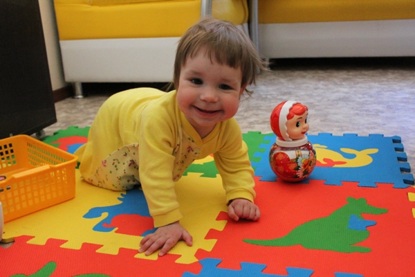Главное наше событие - ровно в 7 месяцев, т.е. вчера, Алиса решила начать ползать на четвереньках (а не по-пластунски, как обычно). Вчера очень неуверенно стояла,сегодня уже ползла, пока не слишком далеко,т.к. по-пластунски все-таки куда быстрее можно добраться до желаемого!! Но сколько счастья и удовольствия у ребенка от того,видимо,что получилось!))