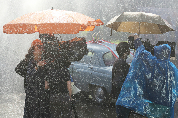 Сразу скажу, почему я так офигенно выгляжу - по сценарию начинает ливень и вся съемочная группа неминуемо попадала под струи "дождя" из брандспойта.