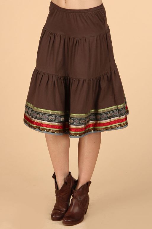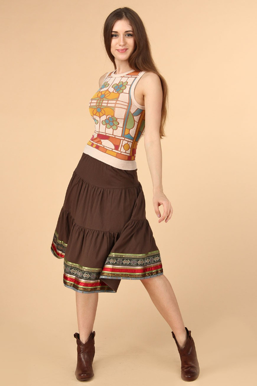 Роскошная модель, яркая, стильная, привлекающая внимание богатой отделкой. Эта комбинированная многоярусная юбка имеет расширенный силуэт, длину ниже колена. Ткань высококачественный 100% индийский хлопок, не подверженный пиллингу. В верхней части имеется кокетка, тонкий пояс, застежка на молнию. Интересное изделие, для комфортной повседневной носки, а также для торжественных случаев. Ткань очень приятная, плотная и гладкая, рассчитана на весну-лето. Носить можно с топами, туниками, майками, блузками.