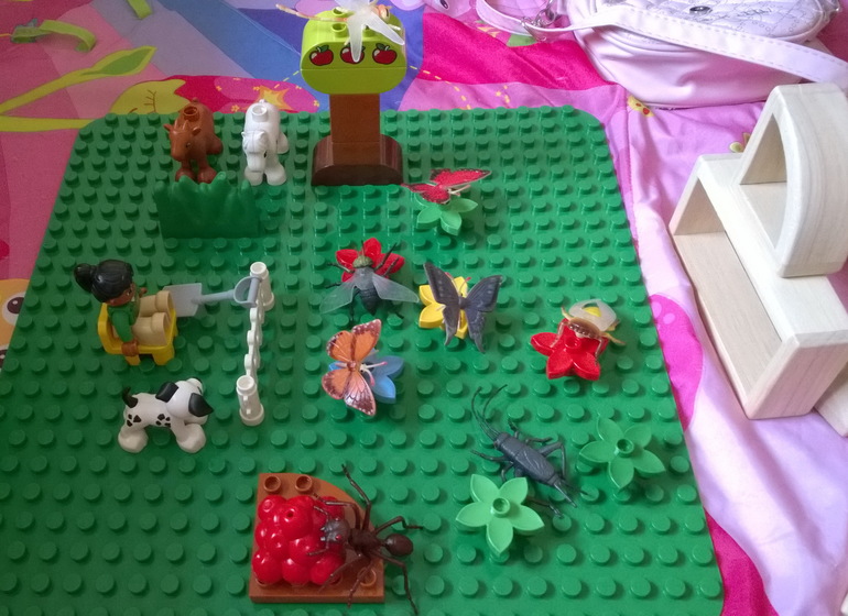 Практически всё я дала ей потрогать, пощупать, рассмотреть, но какие-то задания и занятия пока отложила. Сейчас ребенок активно играет с бабочками и мухами они лежат в ее сумке даже на прогулке.