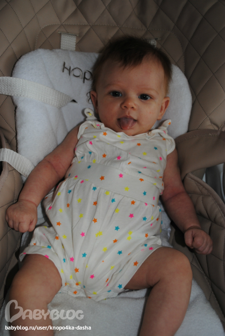 красавица! и так голову держит хорошо! мой еще не хочет держать лежа на животе((( приподнимает и сразу опускает... а вы давно уже так держите?