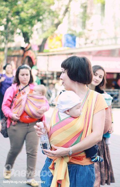 Гуляла я в прошлый четверг с подруженькой и нашими детями на детской площадке в центре города. Мой в слинге. Подошла ко мне девушка с Хипситом на талии (с дочкой гуляла) и пригласила на встречу слинго мам в ближайшую субботу, дала визитку.