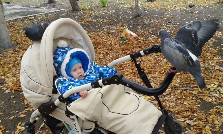 На прогулках в коляске ему скучно. Поэтому добираемся в ней до пункта назначения и обратно. А так катаемся на руках с периодическим верчением вокруг своей оси.В связи с этим, купила себе хипсит. Пока не поняла, нравится мне эта штука или нет.