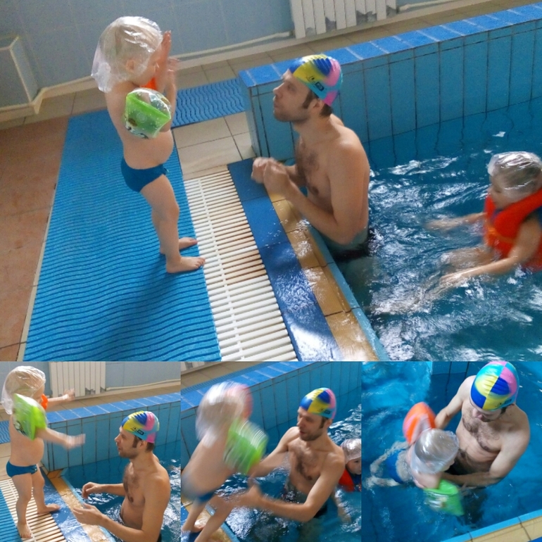 По-прежнему до безобразия бесстрашен. По этой причине, постоянно ходит в синяках (обычно на лице и голове :)). Вчера ходили в бассейн - прыгал с бортика, не зависимо от того ловят его или нет. Вполне успешно плавал в нарукавниках. Да и вообще физически развивается хорошо.