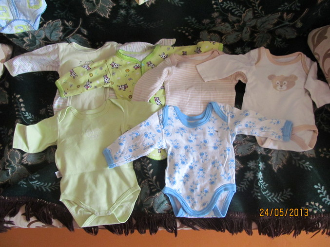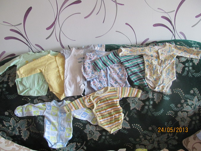 наконец то добралась до этого дела..все сложенно и уже лежит в комоде....еще куча кофточек ... чепчиков..шапочек...разных мелочей...еще в начличии комбенизончик на зиму...остается купить на выписку что нибудь...конвертик...ну и соски, бутылки, крема разные