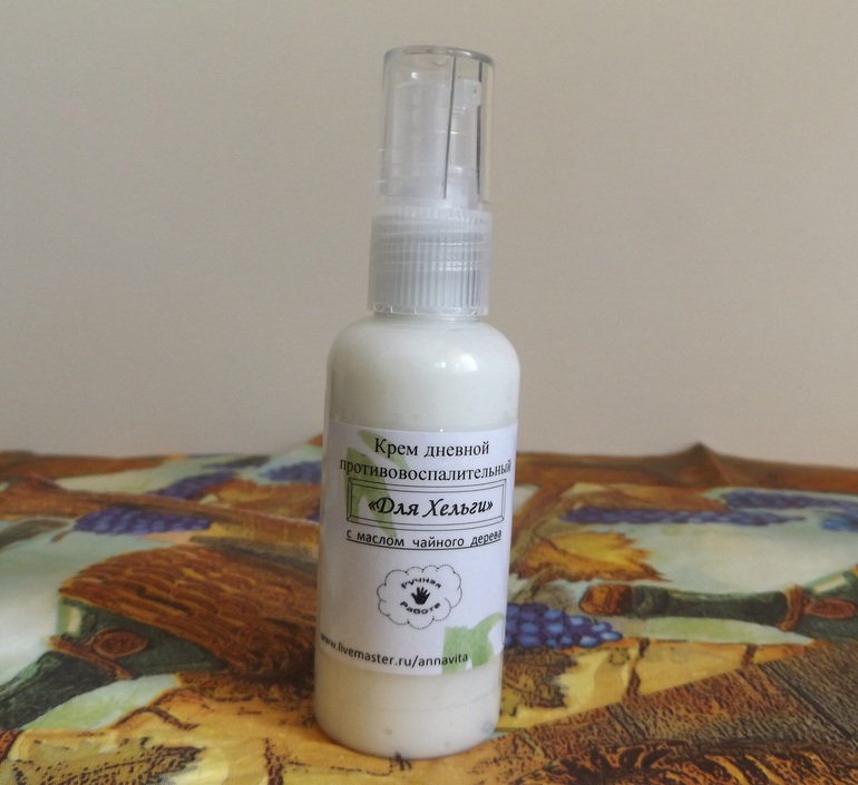 Состав: артезианская вода, масло абрикосовых косточек, масло виноградных косточек, масло макадамии, пшеничный эмульгирующий воск, растительная стеариновая кислота, оксид цинка, эфирное масло чайного дерева, эко-консервант суттоцид.