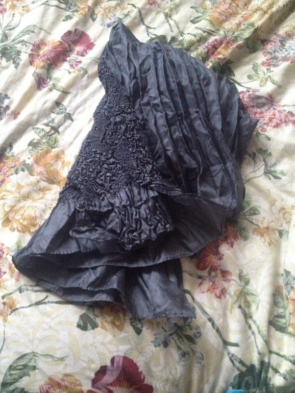 3) Шарфик. Темно-серый, или скорее цвет мокрого асфальта. Легкий и мягкий. По середине гофрированный, а по краям как-будто "мятый", не знаю как называется этот эффект) Экв.- 500р.