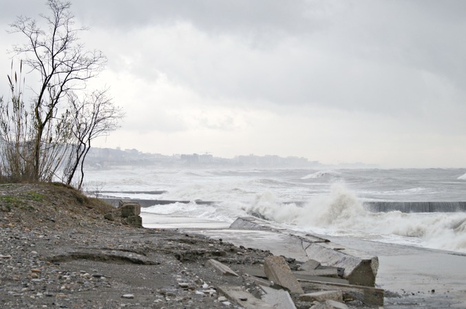 У нас тут зимниее шторма были. Афигеть. Так все пляжи поразмывало.Вот например волна опрокинула фонтанчик. А там где этот фонтанчик стоял, был бетон. Как видите, все покрыто слоем песка. Теперь наш пляж увеличился в размерах))))