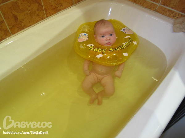 это марганцовка)))) ну я добавляю либо марганцовку,либо череду,а раз в неделю пенку для купания)))а как круг вреден то?? он там ничего не сдавливает ребенка - просто держит его на воде))