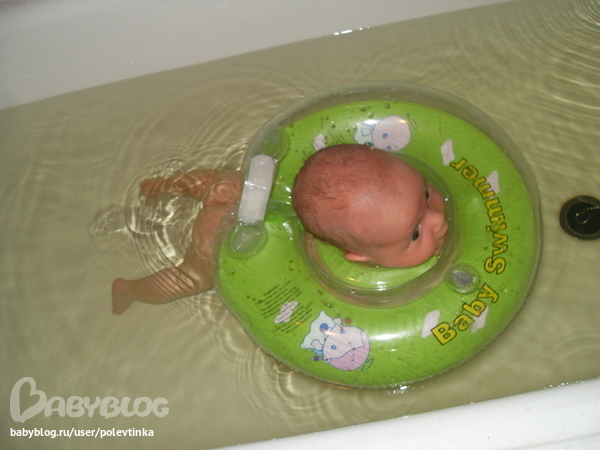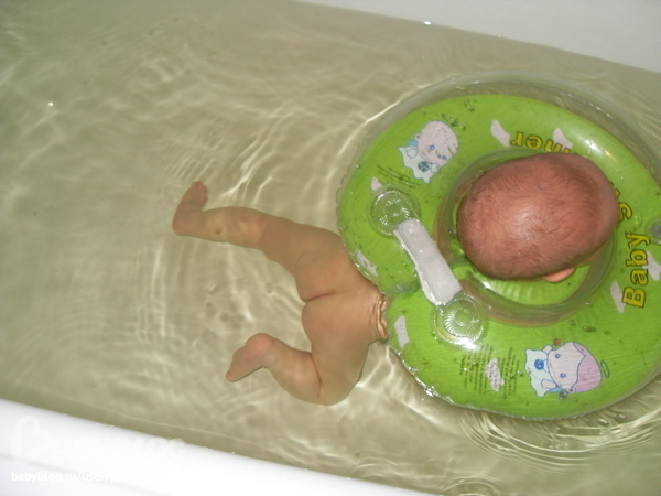 Такая же фигня...пока его не толкнешь он и сидит на одном месте...приходится самой его таскать по ванне за круг!Я то думала ща одену и он поплывет...ага ща...ну будем ждать,может все еще впереди!