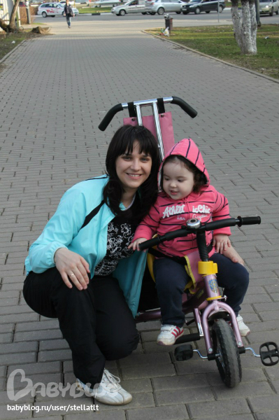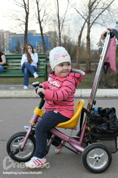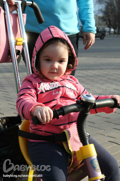 В последнее время за время прогулки от Софки я слышу "исипед" раз по 20 :) Ни одного не пропустит :) И тут как-то спонтанно получилось купить :) Бабушка с дедушкой привезли нас на рынок, посадили софку ина велосипед для уже взрослых деток. он тяжеленный и катить его очень трудно а сама она конечно не будет так хорошо крутить педали! Поставили на самокат, она не сообразила что делать :) Посадили на этот велосипед Навигатор трайк и она не захотела с него слазить :) Так и не вставая мы на нем уехали :))) Если останавливались, она говорила ещ и еще :) Занесли его в квартиру и она весь вечер катала его туда сюда... сейчас утром встала, увидела его и аж от счастья рот открыла :))) и у нее на нем машинально когда ставит ноги на педальки, получается их крутить, пусть этот велосипед только на сезон ей, потом станет мал, но зато ей комфортно, нравится и Софка счастлива!