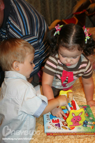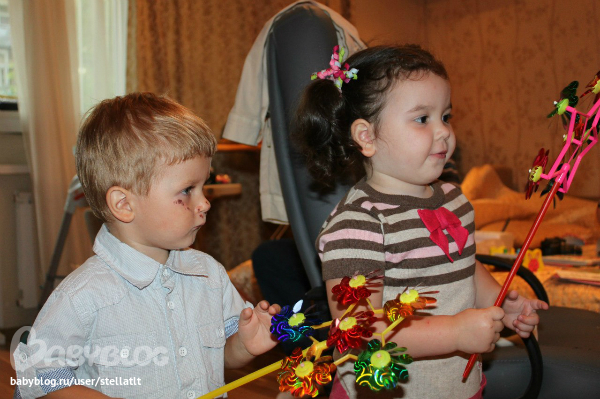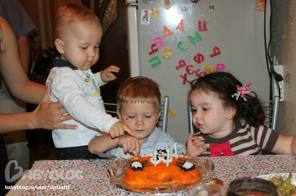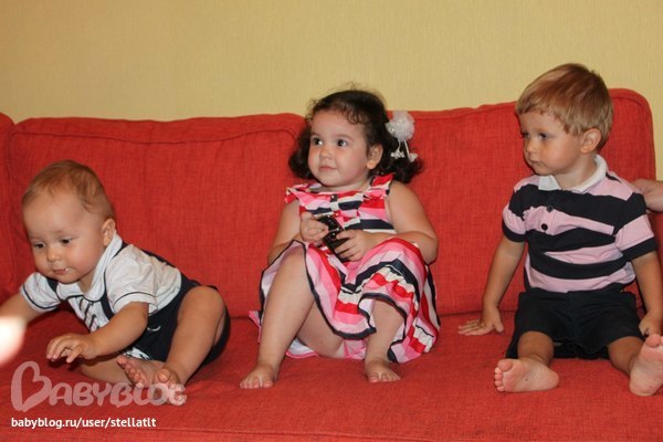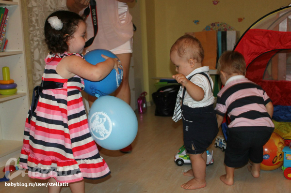 Я столько уже не писала что стыдно даже за себя... но лень моя меня перебарывает :))) Про то что было у нас за лето позже напишу отдельными постами, даже просто для себя на память, потому что перечитывать потом очень интересно! А пока напишу про 15-16 августа! Эти два дня мы были на дне рождении двух малышей! У Андрюшки и Илюшки! Андрюше исполнился годик, а Илюша парень взрослый... ему два :)))) Поехали мы с Софкой до андрюшки на такси, вся Софа такая нарядная девочка, в платье. в болеро, белые бантики :) В общем пока ждали такси не понятно как и где у нас потерялся шарик... садимся в машину а шариков у нас не три, а два в связке... по пути попросили у цветов остановить, продавщицы пока мы покупали цветы затискали Софку :))) купила у них шарики еще.. ну думаю надую около подъезда. а то как-то не очень дарить два шарика... выходим мы из машины... первая Софа, пока я ковырялась доставала сумки, Софийка шагнула назад, споткнулась о бордюр и села попой в грязь... платье.. белые колготки... все грязи... у меня в урках куча пакетов.. цветы... и шарики эти... и плачущий ребенок.. тут уж было не до надувания шариков и так и подарили мы два шарика :) Ну слава Богу все дальше было отлично, платье мы застирали и оно быстро подсохло. правда потом переоделись потому что не любит Софка платья... а 16 августа мы проснулись и нам надо было сходить в церковь и еще решили всетаки поехать посмотреть диваны! Вышли втроем на улицу... а у нас не завелась машина... решили вызвать такси доехать до станции, атм посмотреть диваны и уже потом пешком до церкви и домой! В общем в магазине мы провели часа полтора наеврное. выбирая сначала диван, а потом приходили к общему мнению в выборе цвета :) но самое главное заказали и оплатили! Так что диван будет у нас 2 ого сентября :) София стойчески все это перенесла.. девочка консультант правда надула ей три шарика :) водила ее пить :) София проползала весь торговый зал... уморился ребенок :) потом пока шли до церкви она в коляске все пыталась угнездиться поспать, но все никак не могла улечься :) ну а в церковь она тоже захотела пойти, поставили мы с ней свечки, помолились, заказали панихиду для моей бабулечке... об этом напишу потом... (за то время пока мы были на отдыхе в Тольятти у нас умерда моя бабушка...((()... В общем вернулись домой в пять вечера, Софа дико хочет спать.. уложили ее на часик, пока себя в порядок привели, разбудили ребенка и выдвинулись к Илюше на ДР :) Прошли мы вчера приличное конечно расстояние :))) Там детки порезвились, поиграли, наелись :) Софа мне кажется все время у всех хомячит :) я рада! главное чтобы это ей не вредило :) И вот вернулись мы домой в 10 вечера, конечно спать она не легла так рано, в первом часу ночи уложились :) Но на этом празднования не закончились :) Завтра мы поедим на дачу, еще раз отмечать Илюшкин день рождение :)))