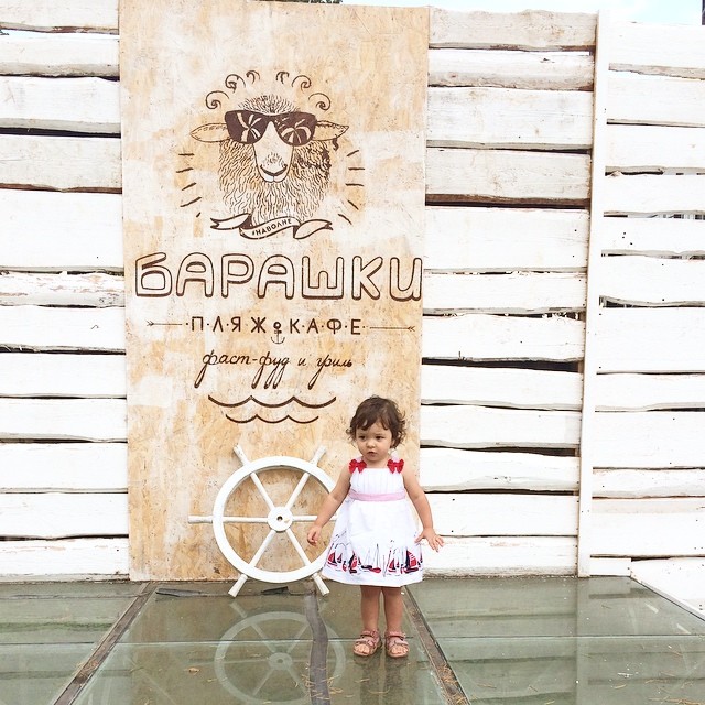 А Лера даже на пляж в платье :) истерикой вытребовала именно этот сарафан :) ей всего полтора года, а она сама выбирает, что одеть :)