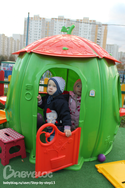 Потом гуляли-ходили и увидели классный уголок для самых маленьких - домики, качалки, горки с которых катишься в бассейн с шариками. В общем купили мы билеты и пошли туда тусить - мои киндерята были в восторге!
