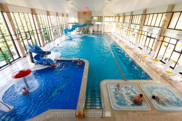 - Крытый плавательный комплекс с элементами аквапарка с пресной водой (взрослый и детский бассейн, джакузи, гейзеры, водный массаж)