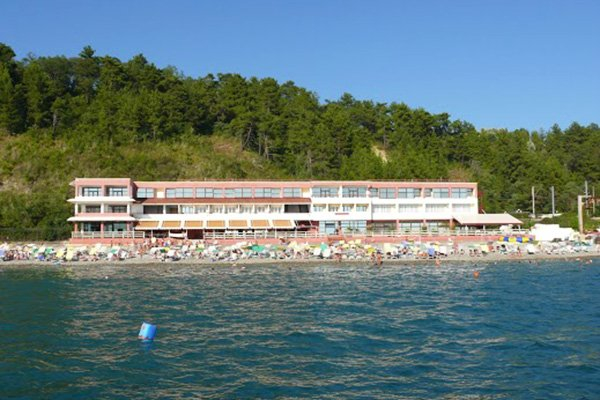 Пляж находится на расстоянии 400 метров от пансионата, но каждые 10 минут курсирует бесплатный микроавтобус на пляж. Пляж галечный, полностью оборудованный лежаками, навесами, туалетом. Есть кафе-бар, wi-fi.