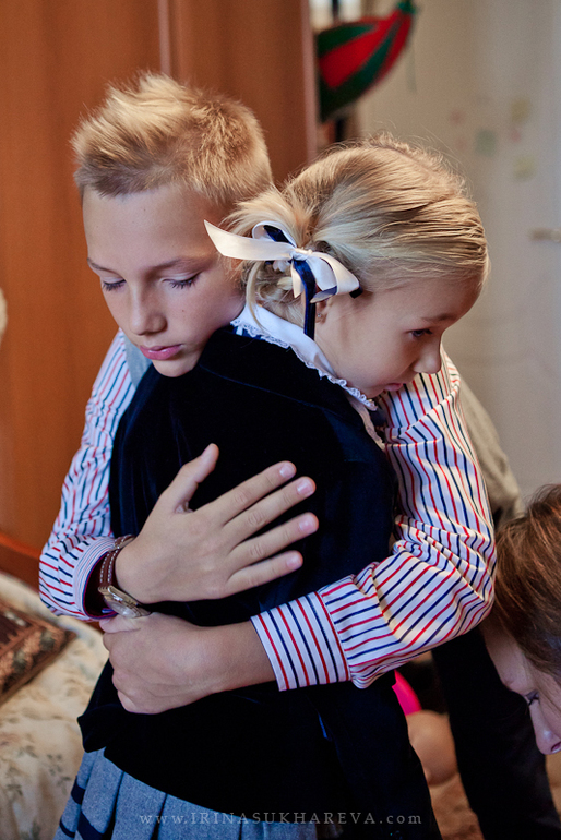 3. Если будет возможность, сделайте кадры по дороге в школу. Это придаст еще большую репортажность вашей съемке первого сентября.