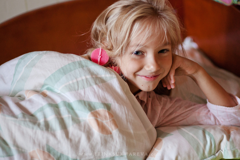 2. Утро первого сентября. Для полноты истории можно сделать кадр только что проснувшегося первоклассника. Раздвиньте шторы, чтобы в комнате было больше естественного света.