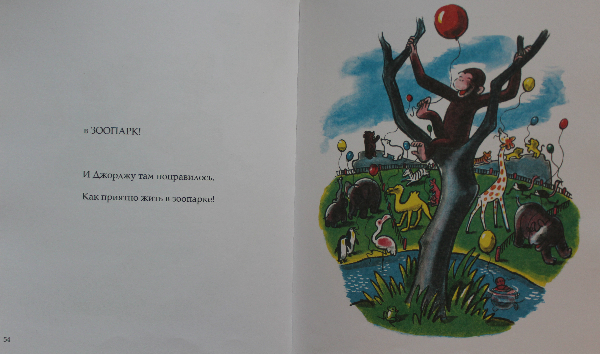 Эту книжечку Алисик в библиотеке раздобыла. История добрая, веселая! О том, как обезьяну-проказника поймали и привезли в город, где с ним произошло несколько приключений, а потом его друг (тот самый - который его поймал и привез в город) отдал его в зоопарк! Джордж (так зовут обезьянку) безумно счастлив - ведь в зоопарке так хорошо ))
