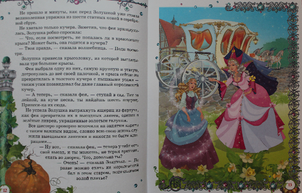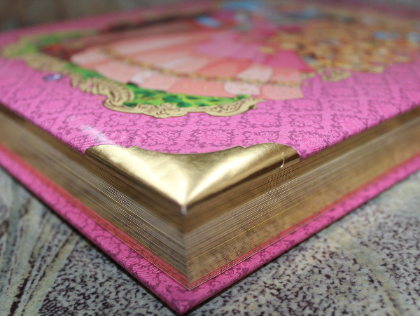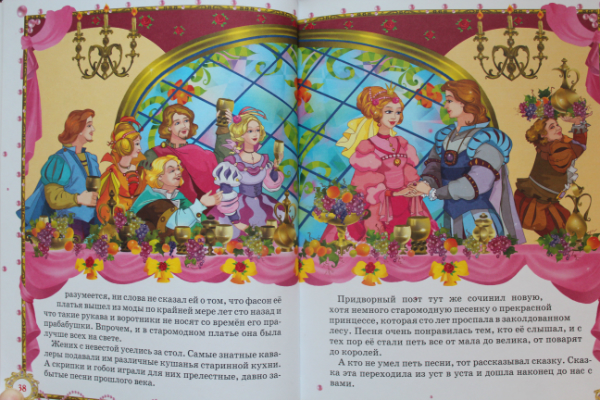 Оформление у книги и правда сказочно-принцессовое )) обложка пухлая, страницы и уголки позолоченные )))