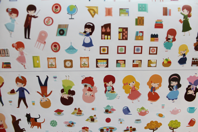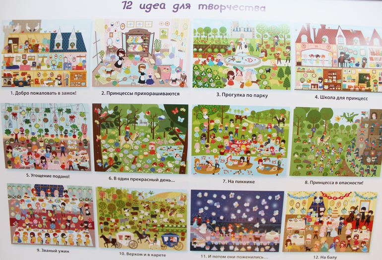 В альбоме есть 12 листов для тематического творчества с наклейками. Листы пронумерованы и листы с наклейками тоже. Наклеек очень много, после усердного обклеивания какого-либо листа, остается еще довольно много)