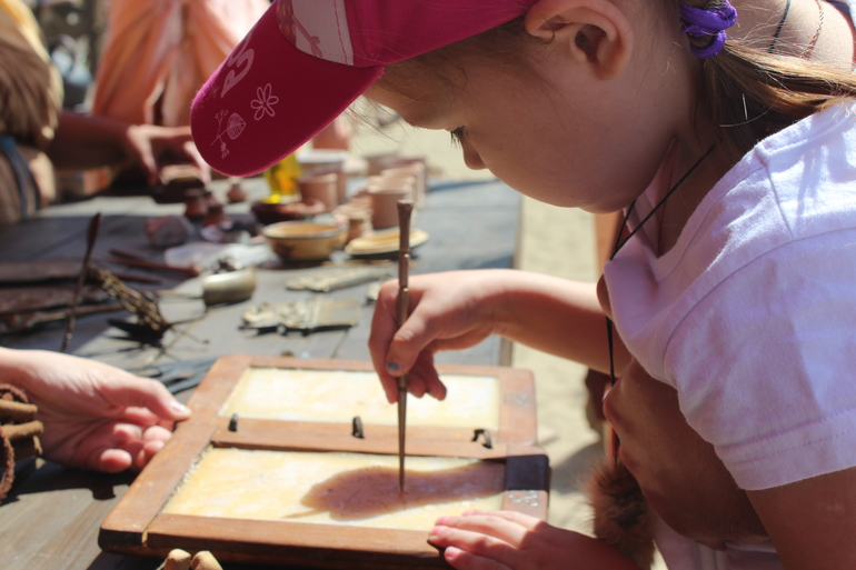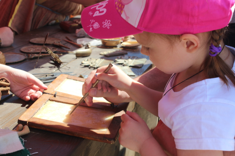 Несмотря на количество народа, нам всё равно понравилось! всё, что хотели, попробовали, посмотрели, поиграли! Алиса еще и покупки кое-какие сделала - шкуру себе прикупила, заячью лапку, открытки с гладиаторами....