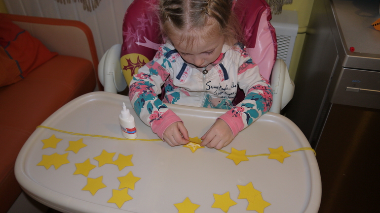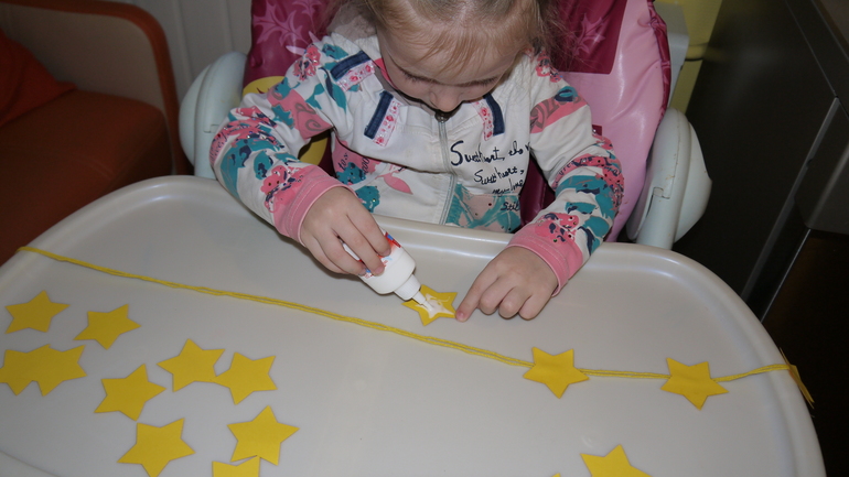 Сегодня в письме было задание, найти разлетевшиеся по лесу звезды и сделать для жителей деревни "Чудесновка" гирлянду. В коробочке все продумано.