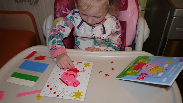 И Чудесник приготовил Лизе подарочки, книга Зима мишки Бруно и пластилиновая поделка "Свинка Пеппа"
