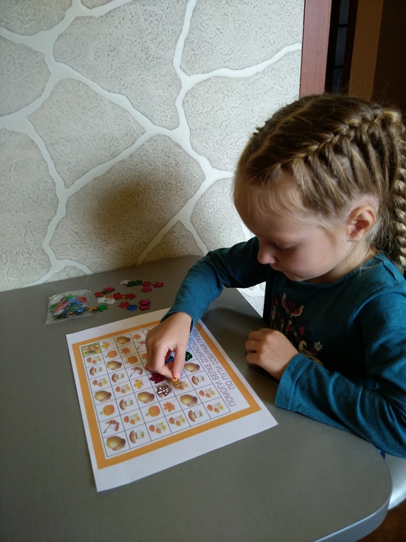 2. Лабиринт. Выкладывает листочками дорожку, собирая по пути грибы.
