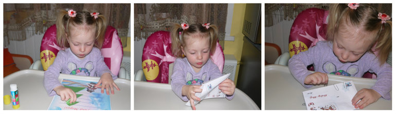 Написали письмо Деду Морозу, заказали ему елку ( а то у нас она никак не появится) . Убрали письмо в конверт, чтоб письмо по дороге не выпало из конверта закрепили его скрепками (было сложно, но интересно, с помощью мамы справилась).