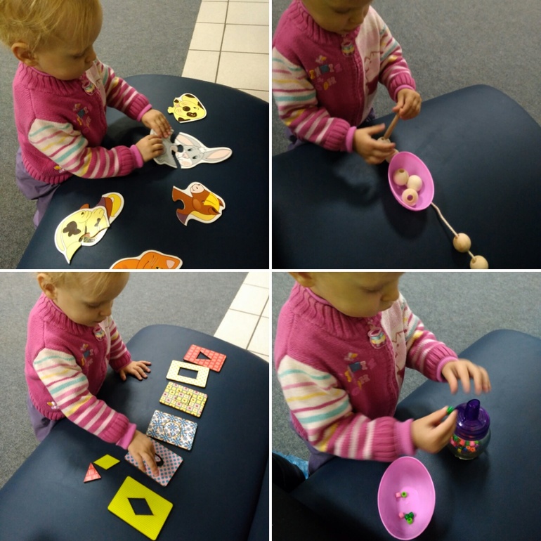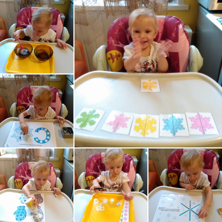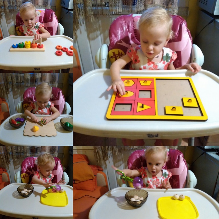 1) собирала пазлы из 2-х частей, не всегда получается скрепить их, кладет друг на друга.