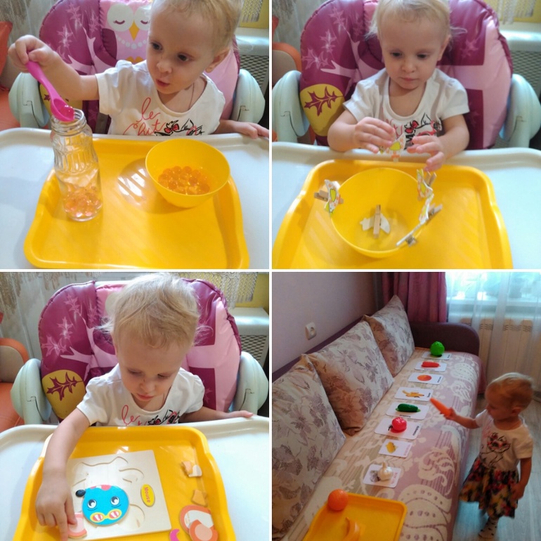 4) раскладывала овощи на карточки, потом я просила какой-то овощ,она приносила мне.
