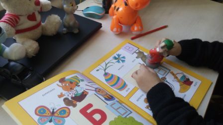 Для изучения букв я придумала такую игру. Я показываю в пособии ШГС "Азбука для малышей" и называю букву и прошу найти все игрушки на названную букву. Так мы учим не только буквы, но и взаимосвязь буквы и предмета, его названия.