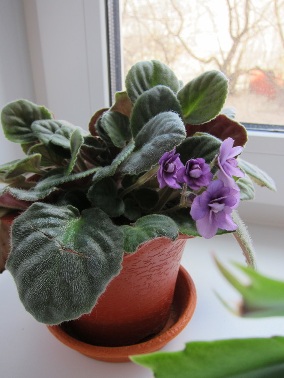 Фиалка, отданная свекрухой. Я терпеть не могу эти цветы. Тем более без моего ведома их подселили. Я принципиально ее не поливаю и жду, пока она сдохнет. Но свекровь наведывается к нам раз в квартал, поливает, окучивает - и эта зараза снова распускается.