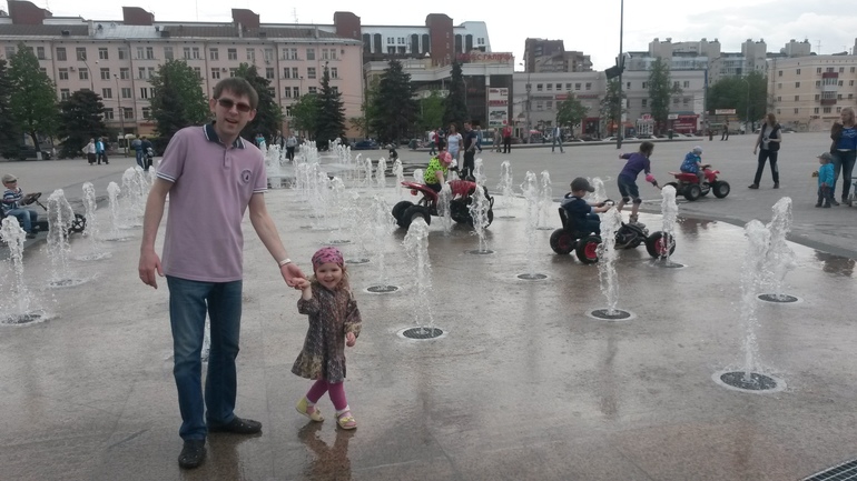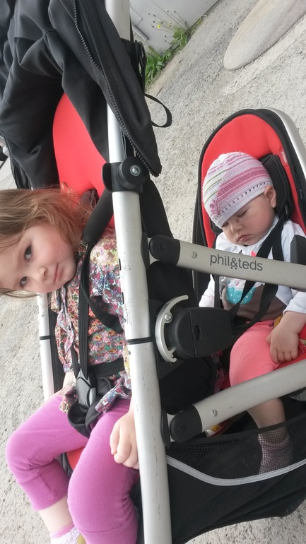 Лиза в свои три года почему-то активно юзает коляску. Для меня это странно, но без коляски мы далеко не ходим.