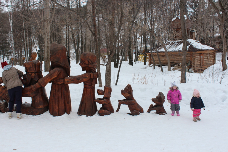 Рядом с пещерой понастроили всяких сказочных персонажей. Лиза бегала и цитировала про " на неведомых дорожках следы невиданных зверей".