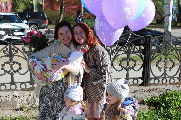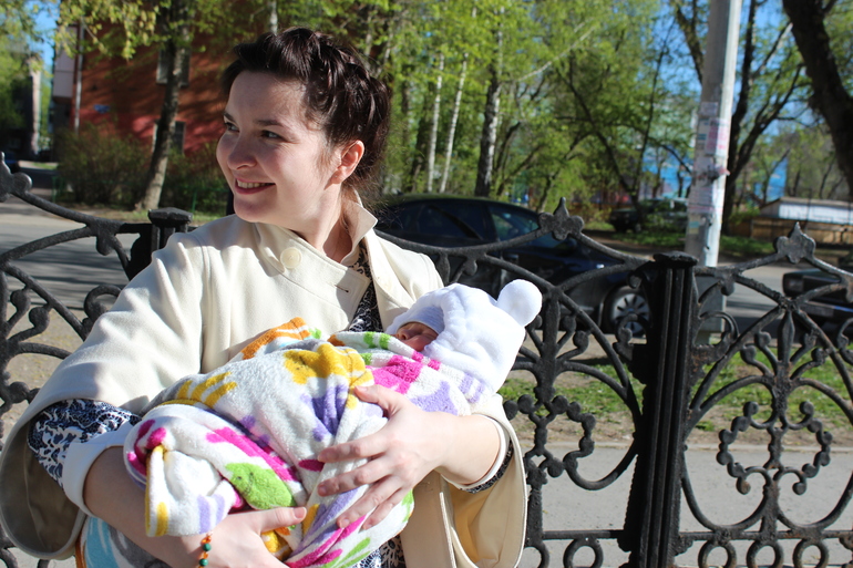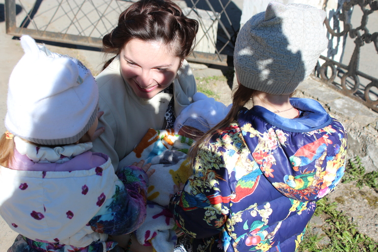 Утром Лиза перед садиком пришла полюбоваться Петром. Завистливо сказала, что вот Катя сможет весь день с ним водиться) Но Петя спит весь день, так что Катя играет в куклы.
