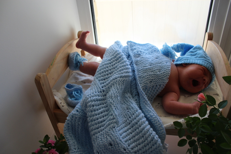 Викуль, вдохновилась вчера твоим медвежонком, вспомнила, что у нас же тоже есть кроватка и мимишные вязаные вещи от бабушки)